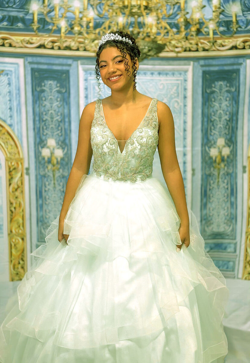 Cada detalhe deste modelo foi pensado para proporcionar impacto visual e conforto, mantendo o equilíbrio entre luxo e delicadeza. Um vestido que encanta sob qualquer iluminação, valorizando a jovialidade e o brilho único de cada debutante.