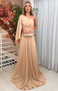 Está em busca do vestido perfeito para uma ocasião especial? Nosso deslumbrante vestido de festa na cor nude é a escolha ideal para você! Este vestido longo apresenta um design sofisticado e elegante, com uma alça única sobre o ombro direito e uma manga longa fluida, conferindo um toque de glamour e modernidade.