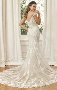 O modelo é a tradução perfeita da elegância clássica com um toque moderno e romântico. Com uma silhueta que valoriza as curvas femininas e detalhes que encantam em cada ângulo, este modelo foi criado para a noiva que deseja expressar sofisticação e delicadeza em seu grande dia.