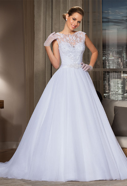 Vestido de noiva branco estilo princesa ombro a ombro decote coração e costas ilusion