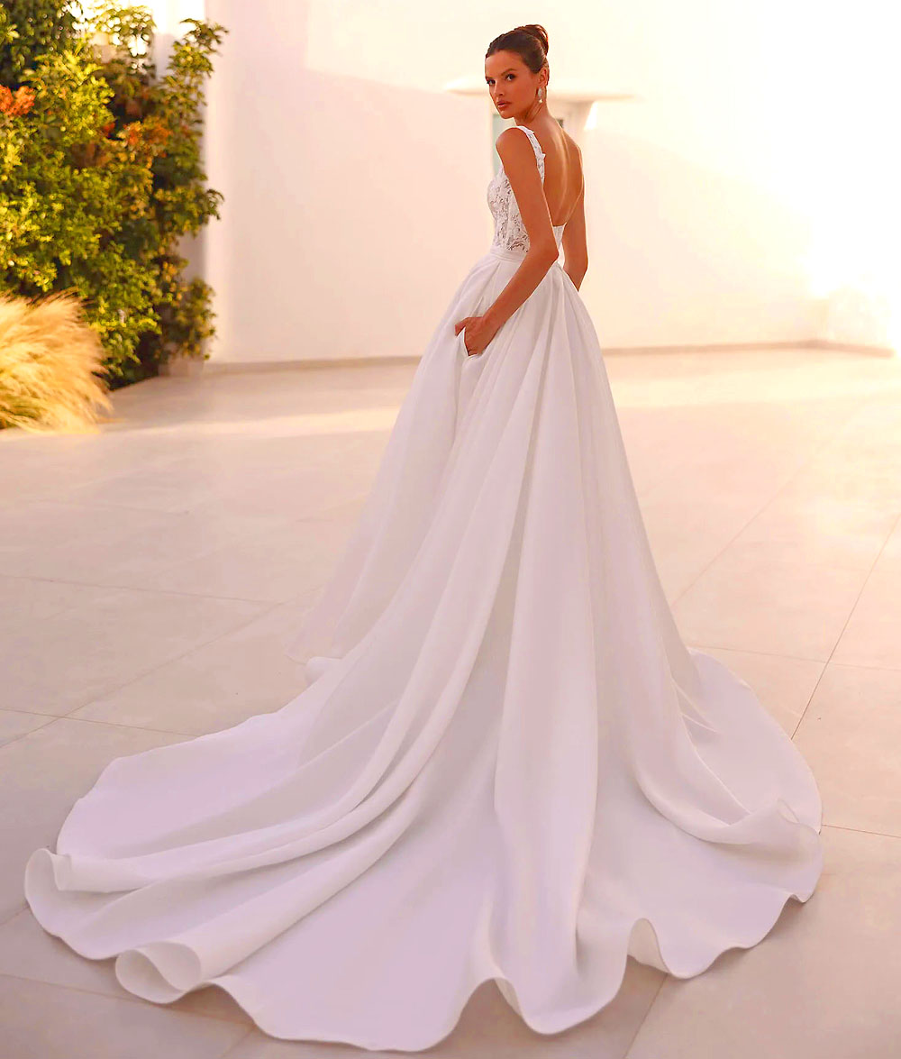 Ideal para noivas que buscam um visual clássico, moderno e delicado ao mesmo tempo, este modelo é perfeito para cerimônias diurnas ou noturnas, especialmente em ambientes abertos como jardins, igrejas e espaços elegantes.