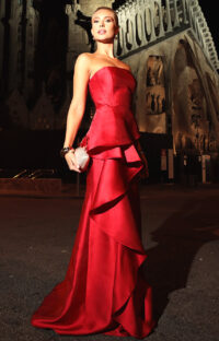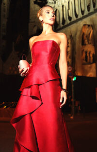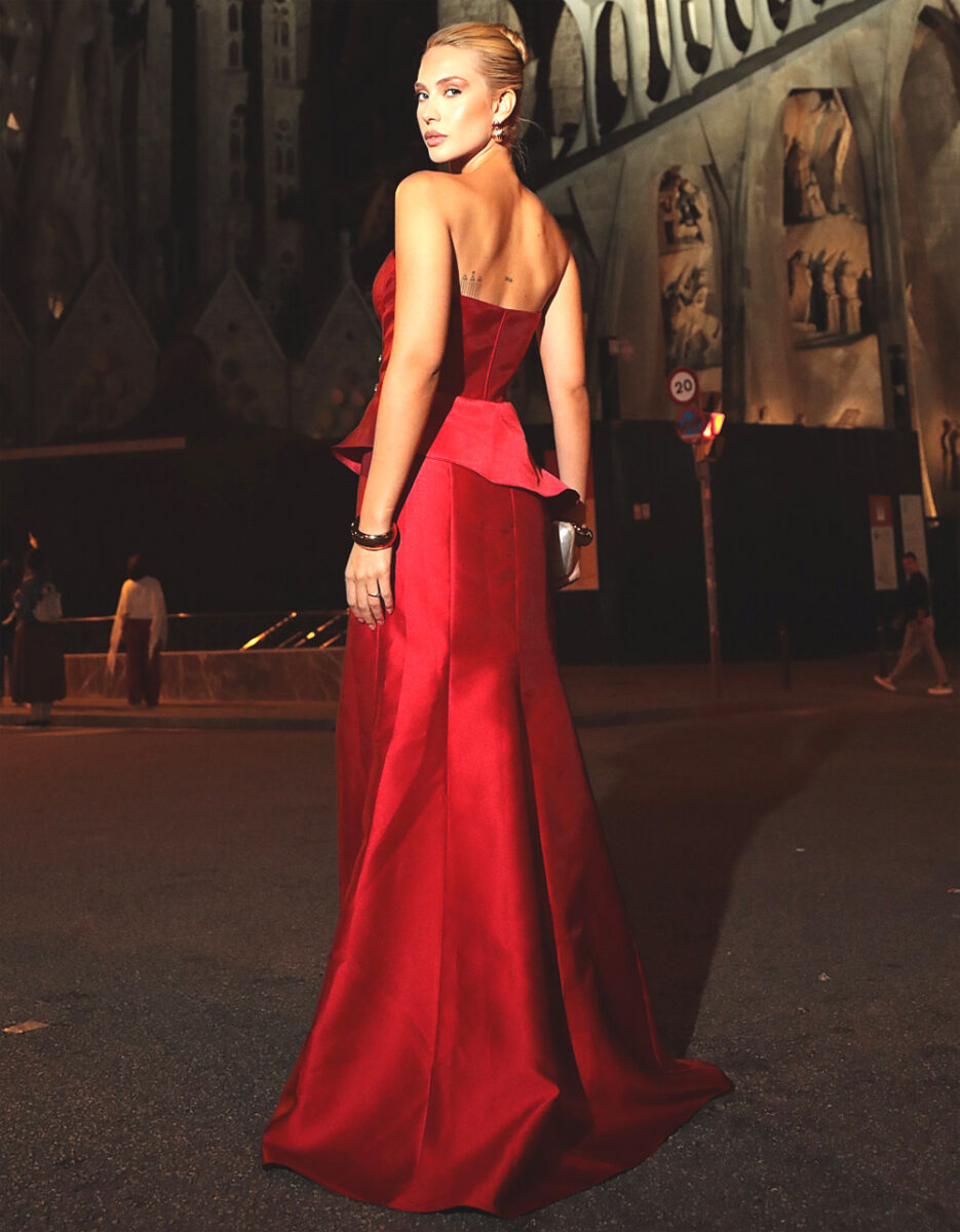 Este vestido longo em zibeline vermelho traduz elegância contemporânea com um toque de dramaticidade. Sua modelagem semi-sereia acompanha suavemente o corpo até a altura dos quadris, abrindo-se em uma saia fluida com volume controlado. O decote tomara que caia, estruturado e bem definido, valoriza o colo e os ombros, proporcionando um visual sofisticado e feminino.